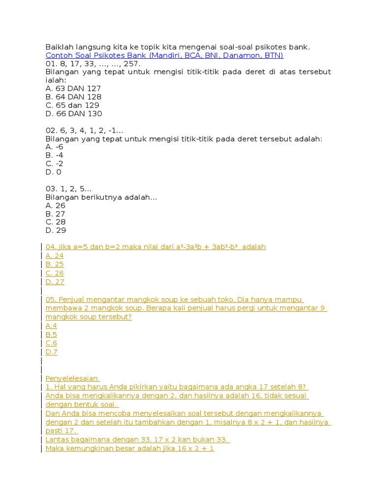 View Download Contoh Soal Psikotes Bank Pdf Dunia Sosial