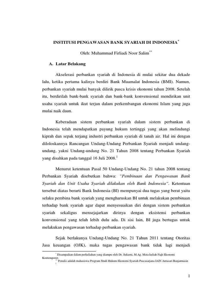 Makalah Institusi Pengawasan Bank Syariah Di Indonesia
